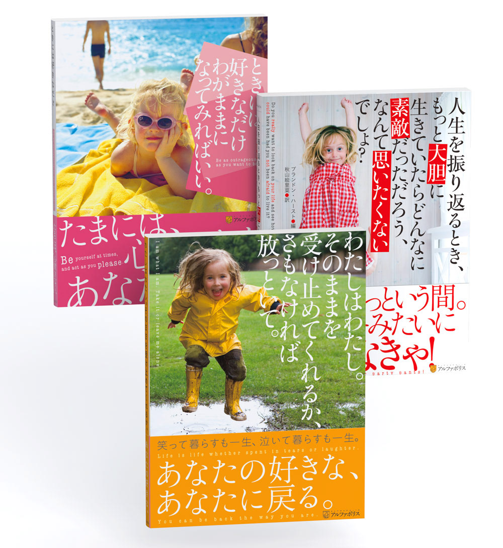 書籍装丁/本文組版 BookDesign 『ときには好きなだけわがままになってみればいい。』 アルファポリス編集部 編 『人生を振り返るとき、もっと大胆に生きていたらどんなに素敵だっただろう、なんて思いたくないでしょ?』 ブランドン・ハースト 編/秋山絵里菜 訳 他 発行:アルファポリス